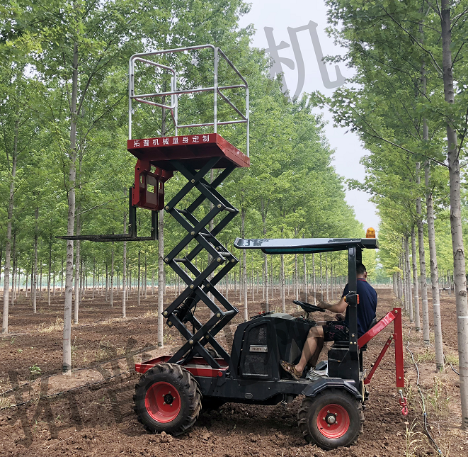 多功能高空作业平台集多种功能于一体,具有一机多用、安全高效等特点。平台动力分为柴油动力和电动动力,柴油版采用原装进口久保田发动机,省油更放心,电动版采用72V150A/时,电池组,动力强劲,经济环保。可自由搭配各种配套装配,可实现高空作业、养护、搬运、运输、吊装、户外发电、户外液压、灌溉打药、高压清洗等功能。园林高空作业车。