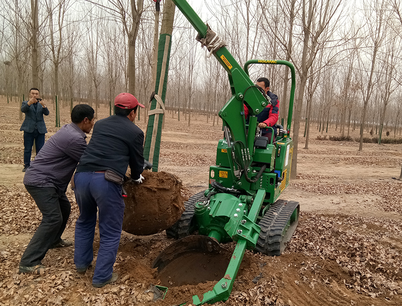 好马克挖树机,意大利整机纯进口,体积小巧灵活,橡胶履带伸缩式设计,调节机身大宽度,最窄1米,最宽1.4米,履带可前后左右调节,行间距两米以上都可进行挖树,适应于多种地形;固定形状的圆弧刀片,使挖出的树球规格标准统一;通过高频振动进行快速切割,保持了完整的土球和平整的切割面,提高树木的移栽成活率。旋刀式圆弧刀设计,增加了挖树的种类范围,乔木、灌木、丛生等多种不同类树木品种都可挖球;通过更换规格不同的刀片进行实现挖出不同规格的树球,挖树球直径范围从40CM到140CM。 快速挖树,快速挖树机